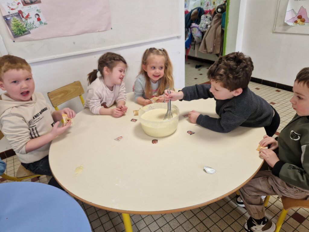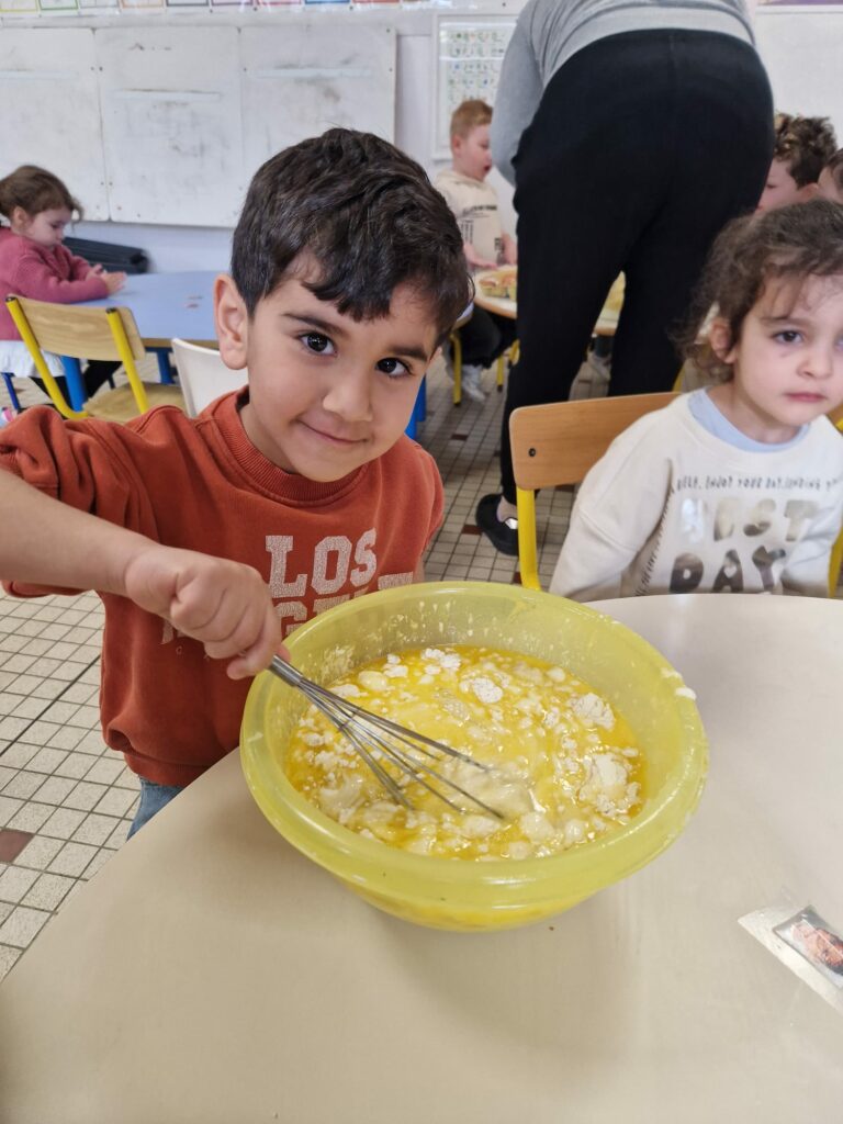 Pour lancer cette journée festive, les élèves de TPS-PS ont préparé de délicieuses crêpes pour tous leurs camarades. Avec beaucoup d’application et de fierté, ils ont participé à cette activité gourmande qui a régalé toute l’école. Un joli moment de partage et de coopération.