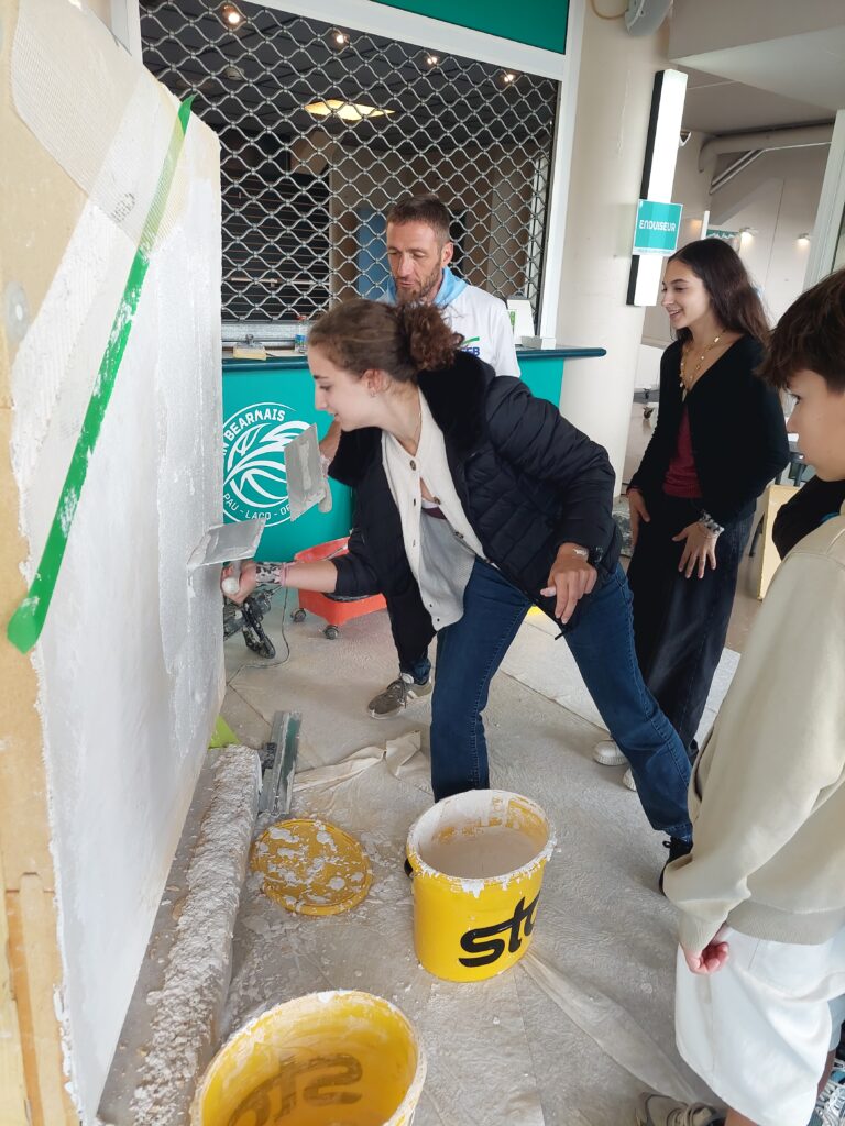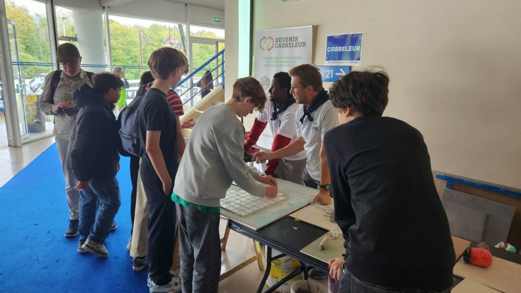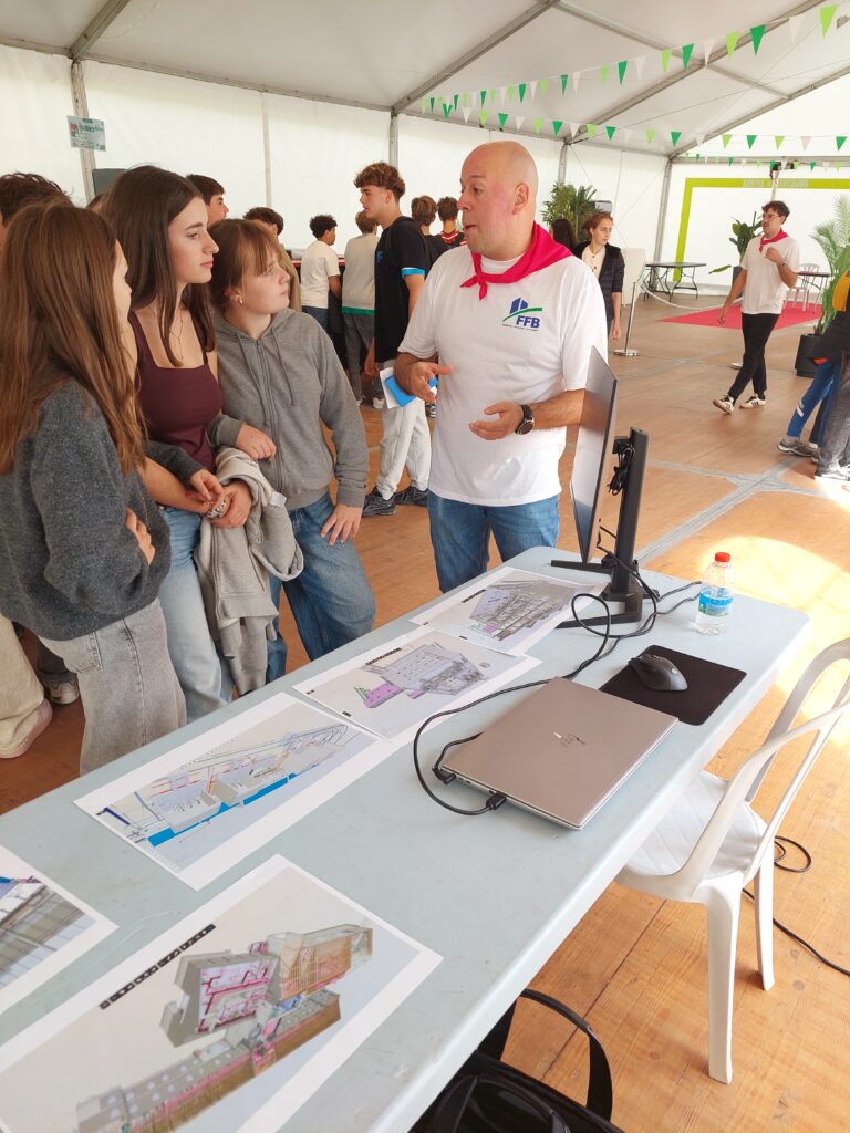 Installés sur les coursives du palais des sports, et à l’extérieur, ces pôles ont offert aux élèves l’opportunité de s’immerger dans l’univers du BTP grâce à des ateliers participatifs et manuels, de s’initier à des gestes professionnels et d’échanger avec des experts passionnés.