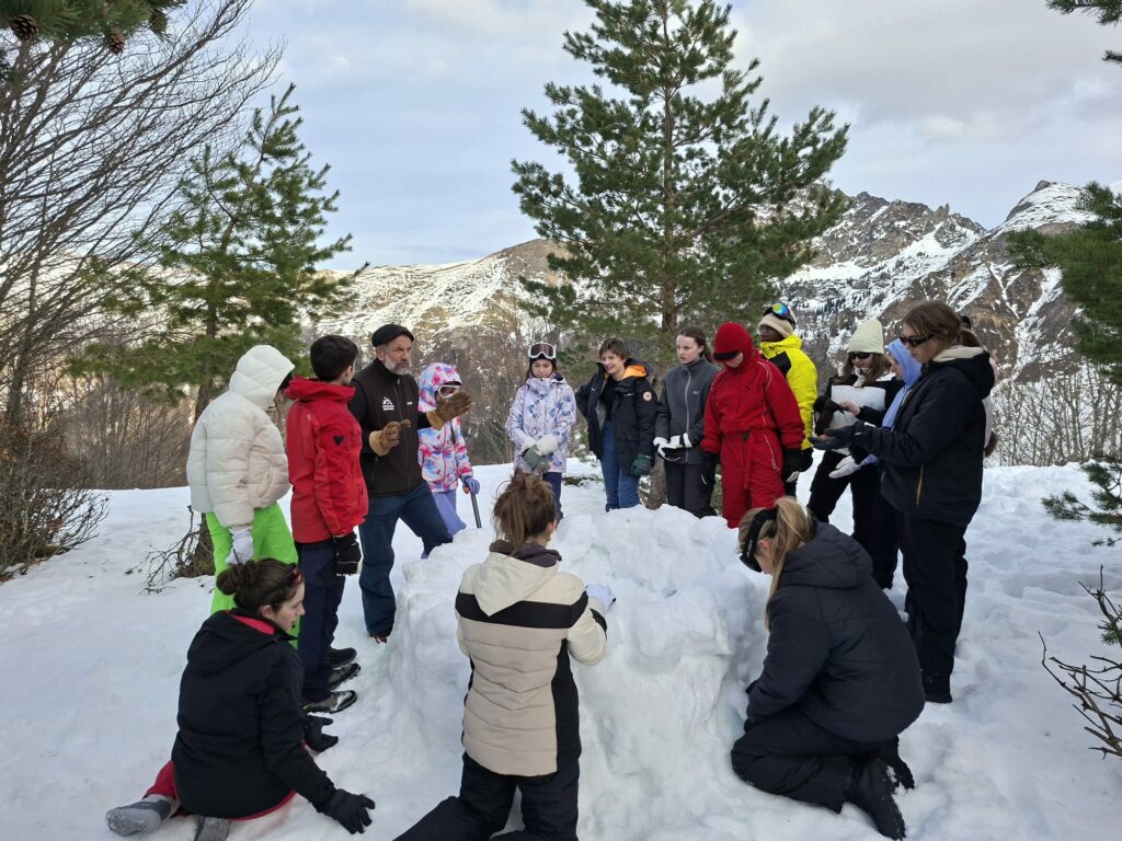 Dans un décor hivernal remarquable, entre sommets enneigés et forêts de sapins, les élèves ont pu s’initier à la pratique de la raquette, observer le milieu montagnard et profiter d’un temps privilégié en pleine nature. Ils ont également participé à un atelier de construction d’igloo, leur permettant de comprendre concrètement comment les populations de montagne s’adaptaient autrefois aux conditions climatiques extrêmes. Cette sortie a été l’occasion de faire le lien entre la langue occitane, la culture pyrénéenne et le territoire qui l’a vue naître.